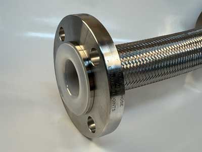 Flare-Thru PTFE hose assemblies are engineered so that the PTFE liner extends through the fitting or flange sealing face, creating a continuous, smooth internal flow path. This design ensures the liner — not metal — is the only wetted surface inside the hose assembly, enhancing chemical compatibility and cleanability while reducing contamination issues.