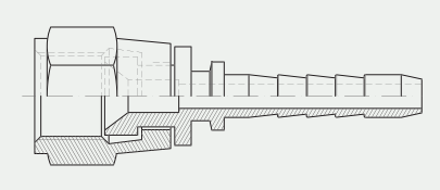Permanently attached fittings for this hose are designed to be swaged. HD/HDP hose fittings also utilize the unique metal-to-metal lock for complete fitting integrity and performance. The material for these fittings is 300 series stainless steel. The inside diameters shown are minimum dimensions obtained after swaging or crimping.
